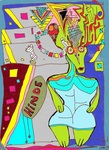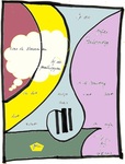 2013Drawing of a telephone conversation which lead to a Completed Thought, digitally colored and printed as a photo.