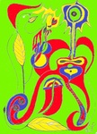 2013Draing made on Whit Sunday or -Monday with a poetic line, digitally colored and printed as a photo.